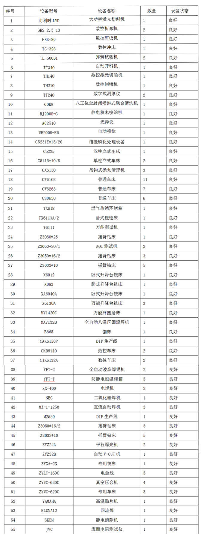 為了提高企業的產品競爭能力,在企業建立以來,不斷進行設備投入,使企業的生產能力不斷提高。具體見主要設備一覽表及附圖。